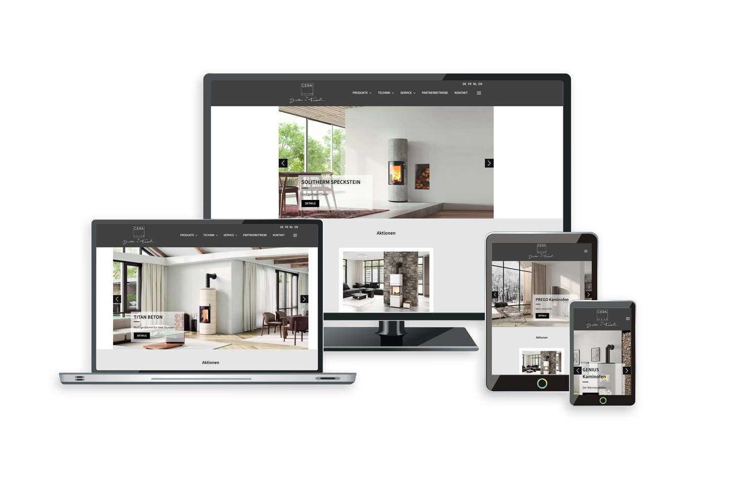Cera Design entwickelt stilvolle Kaminöfen und kombiniert exklusives Design mit hochwertiger Technologie. Auf der Webseite wird das Unternehmen, die Techniken sowie alle Produkte präsentiert, inklusive Zubehör. Der Produktkatalog ist wie ein Shop ohne Kauffunktion aufgebaut. Eine Partnersuche vermittelt die Händler der Cera Design Kaminöfen. Die Webseite ist in vier Sprachen übersetzt.